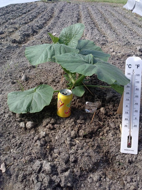last, and second biggest next to my Bell- the 1546 Shenoha. Mr. Shenoha's vine thinks growing on the same side as the first leaf is funny. I fail to be amused. :} Vining, day 32, and is going to pound out plant just like his big brother. This plant grows superbly well- and loves water. I mean loves to drink!!! Waterholic.