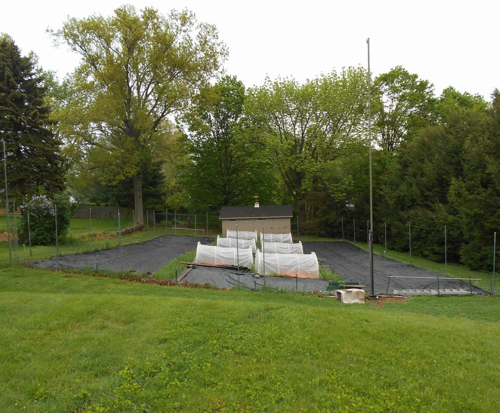 Here is a general field picture, with the only real change for this year being that I am using more weed block to reduce the time I spend weeding in the early part of the season. I am now using material in the center section between my cold-frames. In the gap areas between the two runs of material you can see how tall the weeds would be getting if there was not weed-block in place. I will be cutting these areas down soon, but we are expecting heavy rain so I left the weed lines untouched to increase the rate of water infiltration and reduce potential for soil runoff.