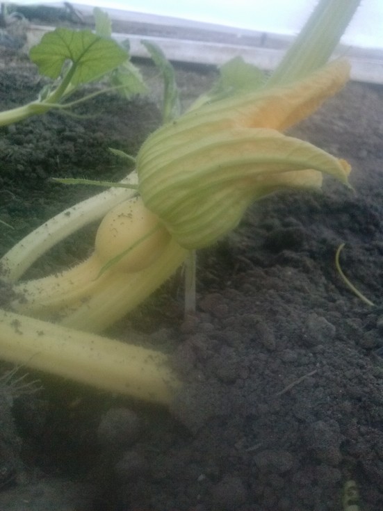 Early this morning.......Guess who popped a kid on me????? No guesses? Fine. :} The 1546 Shenoha!!! I'm hardly surprised considering the damned thing is 11' long in 50 days from seed. Shazzy, what DID you feed that pumpkin last year!!!! :} She was a nice little 3 lobe. Great stem length and shape. I selfed her as my 710 was being wicked and refusing to give me a boy. I will beat him later. LOL