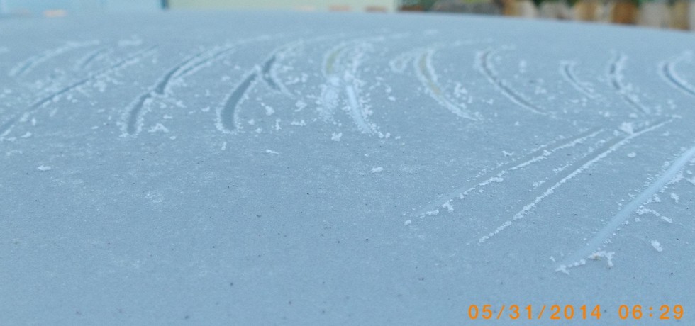It seems like every year at the end of May I take a picture of frost on the top of my pickup that I've scratched with my fingernails. I really didn't see this coming as it was 84 degrees here yesterday. I don't think there will be any damage because I had shading covering all of my plants but the cold can't be doing them any good. Wish I had kept my domes out with heaters going.