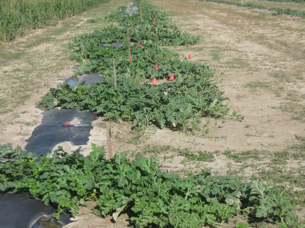 One row of the early melons