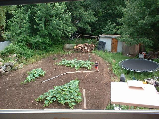 birds-eye view of the patch, my son Cameron agmonst the Rose 1370 foreground Hester 675 squash background and Whittier 1458 leftside.