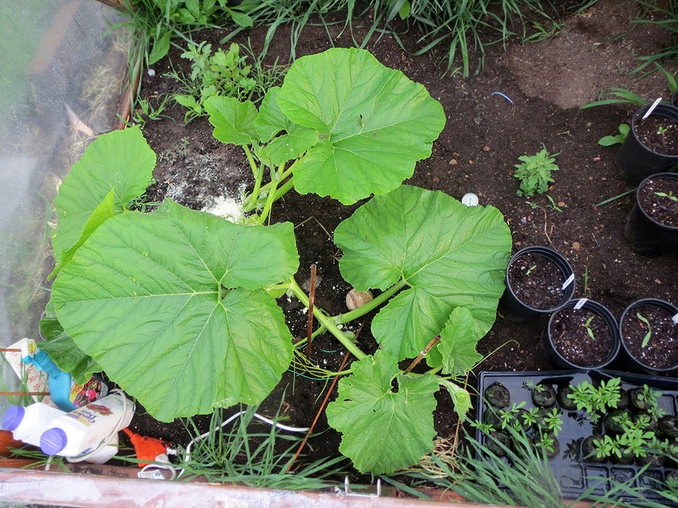 2009 Wallace finally down and running. Although not exactly in the direction I planned. OK so this plant has a mind of it's own. You see a pile of sulfur at the stump because the base of the vine has a longitudinal split. I hope it will heal normally. This hoophouse is home to tomatoes and marigolds while I wait for the 2009 to start the engines.