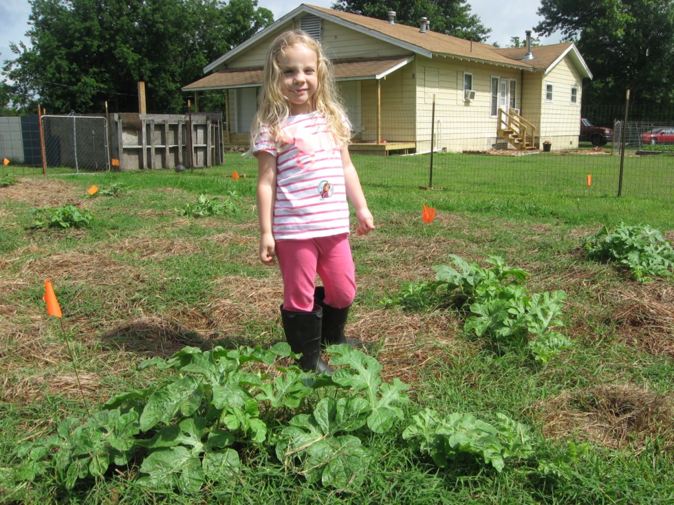 Our garden model with the three 197 Bright '13 Carolina Cross watermelons. Finally starting to vine out!