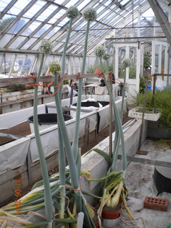 First Onion seed heads have opened, bee's have found them so pollination should be good in present fine sunny weather. Not many of the largest onions survived to produce seed heads, but the ones that did are very strong after feeding when daily watering.