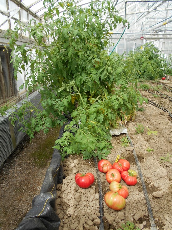 I still have the tomato plants growing in the greenhouse, so it is nice to be able to do some harvests now and have some of the first giant tomatoes to hit the scale for this year. This plant did not have its tomatoes thinned and as you (and my students) can see there are many tomatoes produced, but the largest has only been 540g (or 1.19lbs). However, it has produced over 5000g (or 11 pounds) of great eating tomatoes;-) The goal of this plant was to show the effect of letting any and all tomatoes set on the plant and the effect on the overall yield.
