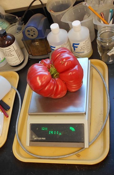 Looks like the teacher still has the touch, since this (my) plant yielded the heaviest tomato out of the class. Not only is this the largest tomato in the class, but it is also a new Connecticut State Record! I was surprised and am very thankful to now hold two current state records, one in tomatoes and the other in pumpkins.