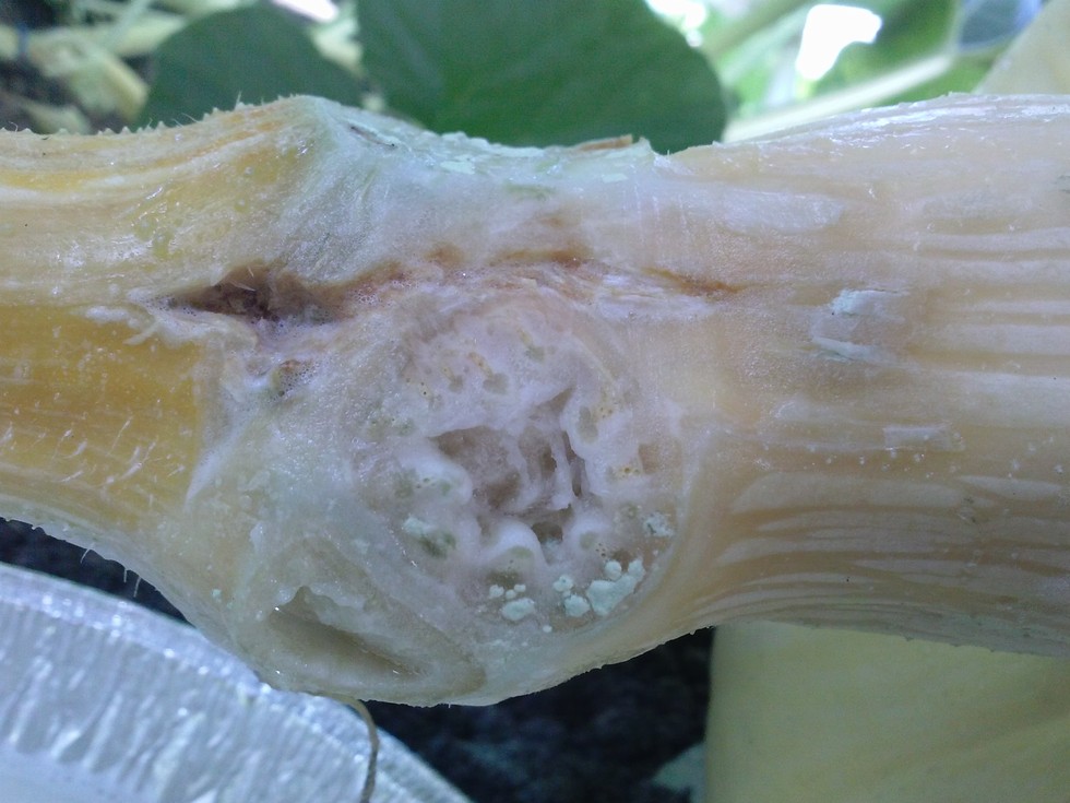 Little bit of stem crack on the Shenoha,with the brown goo. Cleaned it again this morning, then packed with dry clorthalonil. Fan in place.