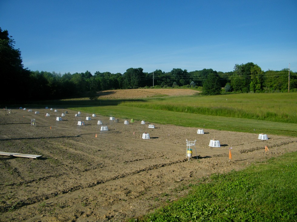 This is last week's photo of the party pumpkin patch. 28 plants that still fit under clothes baskets, when necessary, to protect them from storms, extra hot sun, and at night from hungry critters. Besides my regulars of One-Too-Many...Red Warty Thing...Prizewinner...Phat Jack ...Sorcerer...and Crystal Star, I have added Cronus...Little Giant...Lumina...Lil Pump-ke-mon...and Mrs. Wrinkles. Whew!!