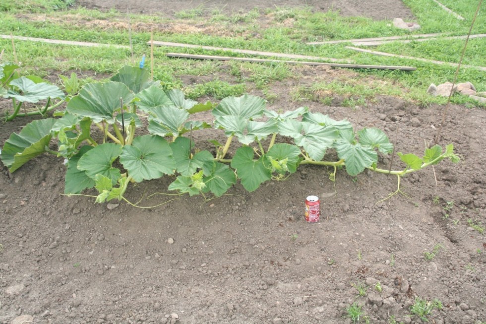 My 150 sqft contest plant (1874 Mathison), with the main vine of about 7 ft length now and a good number of secondaries. Murphy�s Law holds true, out of my six plants this is the plant with the best symmetry of secondaries and for the sake of squeezing it into the 150 sqft contest area I cannot utilize this awesome feature for a decent vine pattern.