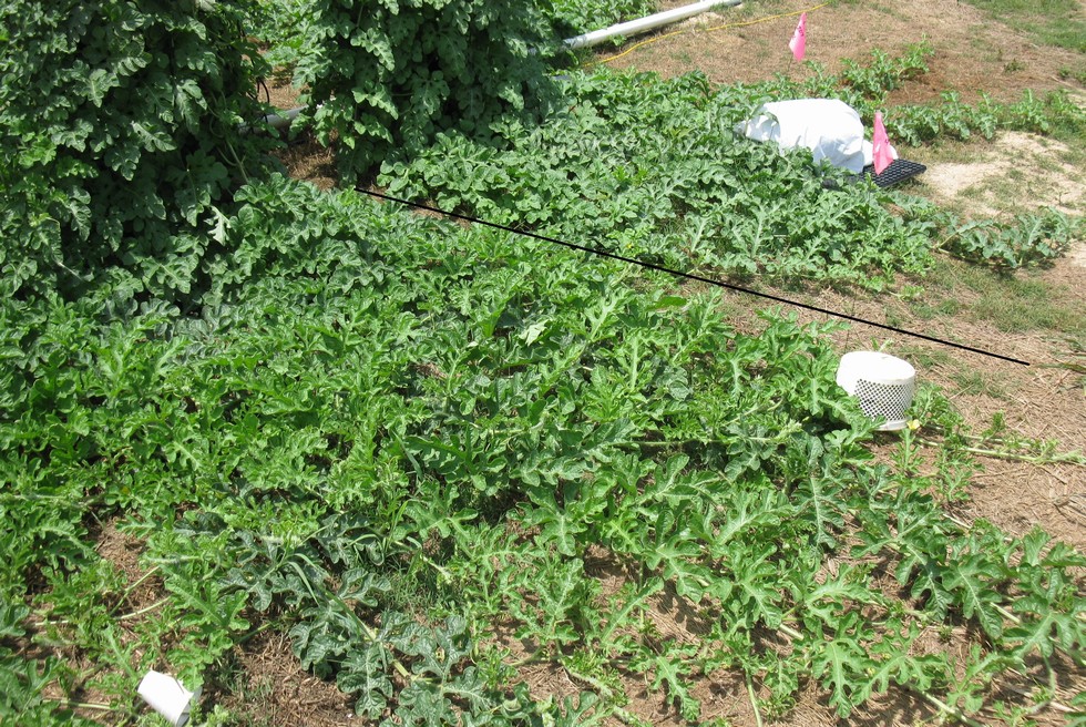 I put a line to show where the plants separate. The near plant had an early set melon that just didn't grow well at all to start and the plant seemed behind. Pulled the melon approx. 10 days ago. and you can see what happened. All 3 plant with a set melon look very similar. Not much new growth and gains are below expectations. Adjusted water timing back to original setting and gains are right back where they were 2 days ago, still not great but better than previous day with similar weather. Made some fert adjustments with more to follow if things don't improve quickly.