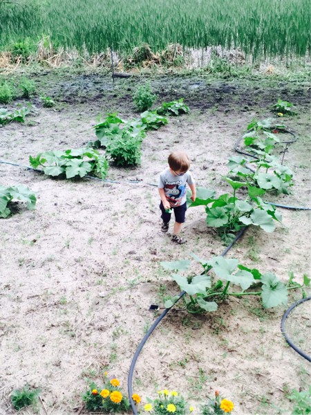 Killing squash bugs on the FP.#65cementz.my #57 and #77. I don't spray poison on this plot it has veggies I want to keep free of it. So I manually kill bugs. They get some every year