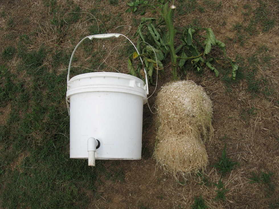 Pulled the tomato plants that had not produced mega blooms or had produced thin/shallow fruit. Still have 4 going and I like what I see. I've taken cuttings from the 4 to put in the buckets that have been removed. Don't know if there's time to grow a big one on them or not but this is a year of experiments. I'm surprised the root-ball wasn't even bigger than it was. Still a fair bit of room in the bucket. Plants were 6-7 ft tall.