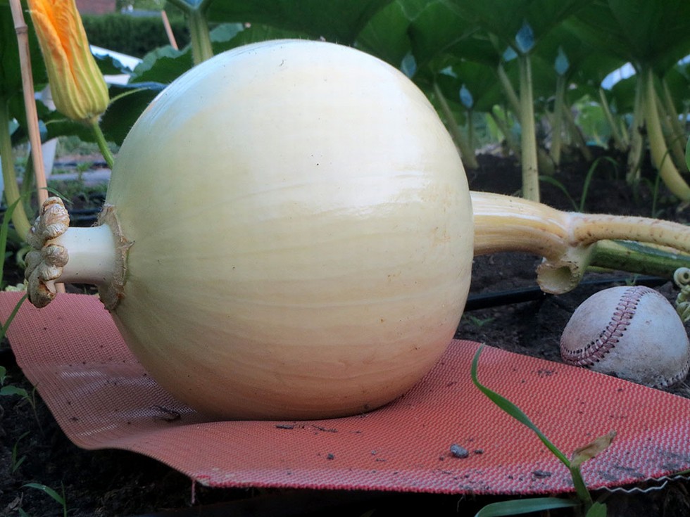 This is the 1530.5 x 2009 pumpkin at 11.5 ft. 10DAP this morning and it measures 28" CC. Shape looks tall. 2 more options further down the vine at 17ft (3DAP) and 18.5ft pollinated this morning. I removed one at 14ft that had an asymmetric blossom.