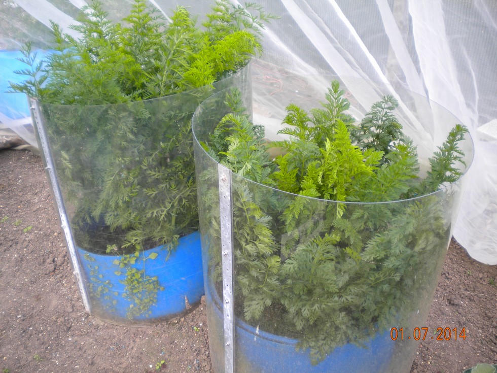 Heavy Carrot tops are very lush in these two clear plastic barrels, not able to see what is growing below at present but pleased with the healthy leaves. They are growing inside my fine netted tunnel. Will have to water these if the present dry weather continues.