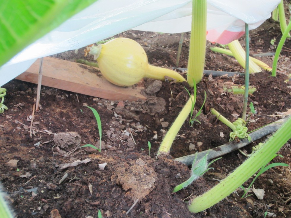 this is the fruit at 10 foot out, it was an emergency polination. I hadn't planned on polinating her, but decided to last minute when I saw the slightly deformed flower. She is not in the best position, but if all else fails, I can whack the main and use it If I am desperate. She was an open polination that I selfed.
