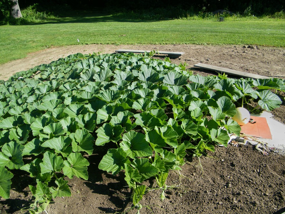 This picture is the 1634 Werner plant with its 10 day pumpkin, 32" circumference. There are also pumpkins pollinated on the 1894 Mathison and my 1327.5 Rea.