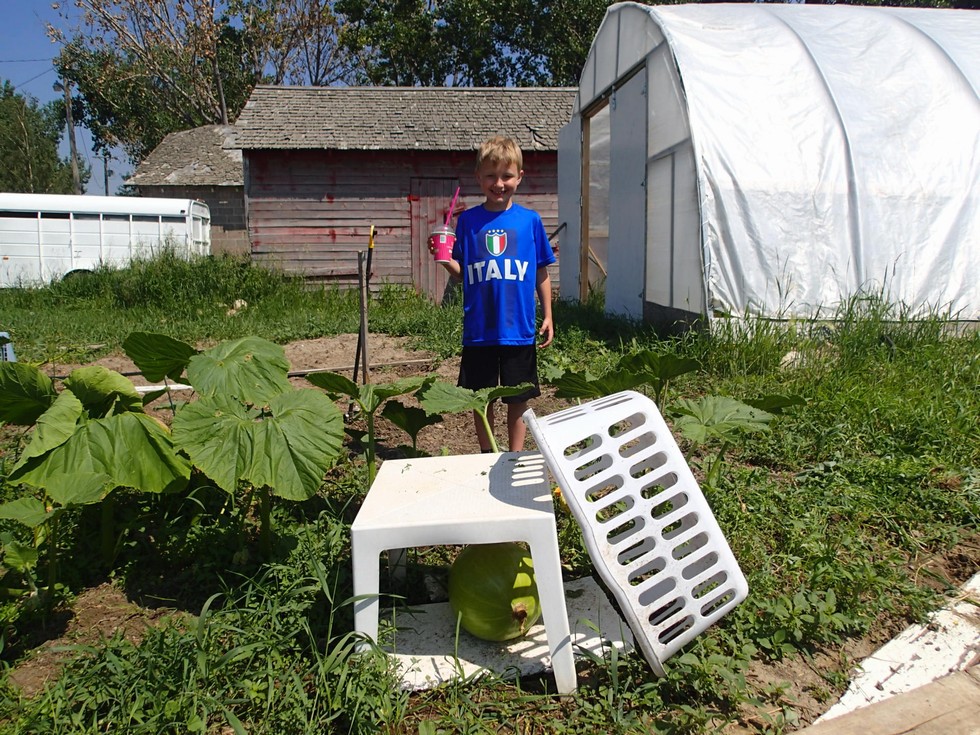 Alex was cheering for the Italians in the World Cup since the Ukrainian team didn't even qualify. He didn't choose well. Oh well. This is his 825 Makarchuk squash. Day 14. All of the rain in June stunted the growth of the farm patch plants. Until the deluge, he had the best plant going. Since the soil has dried out, the plants have started growing again. It's July 11th, 7/11. Time for a free slurpee.