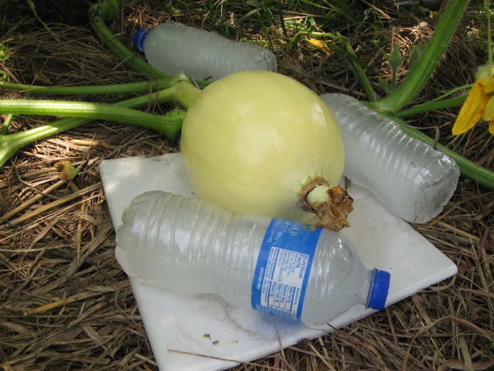 7 DAP on the 1641 Montgomery. Terminated and buried vines today, with the main terminated at about 28 feet, and this pumpkin at 22. Not sure if the frozen bottles will help at this point, but they can't hurt in the Oklahoma heat