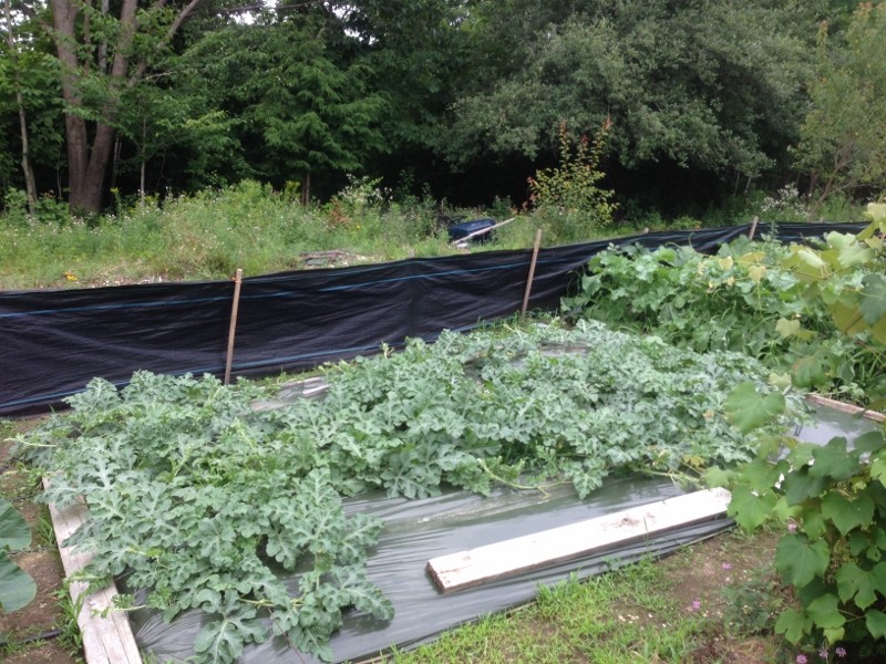 The watermelons are growing well, they do have a few females. Nothing set yet