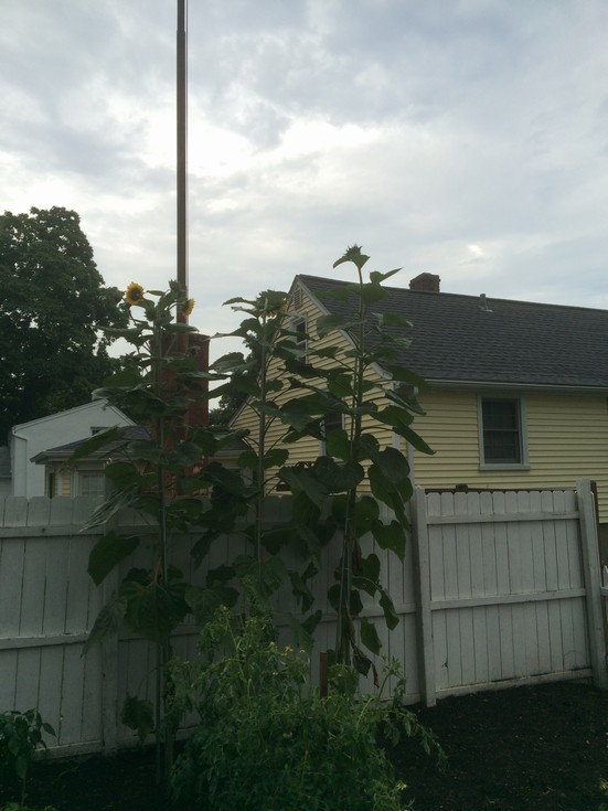 sunflower at 12 ft,weird seeing 4 flowers on it,never seen that before.