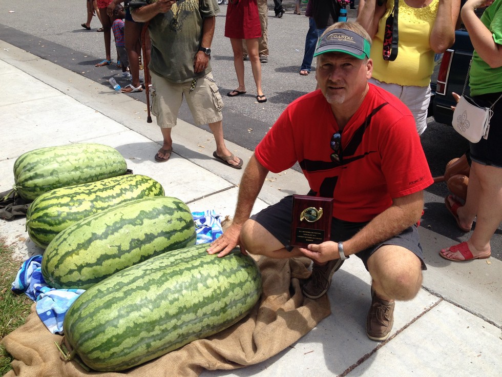 My melon came in way light according to chart, but was able to hang on and win Fair Bluff watermelon festival today. Weighed in at only 136lbs, when it was charting 184 OTT (177lbs). When I rolled him over to load this morning, it sounded like a washing maching inside. Oh well, it was good enough to win