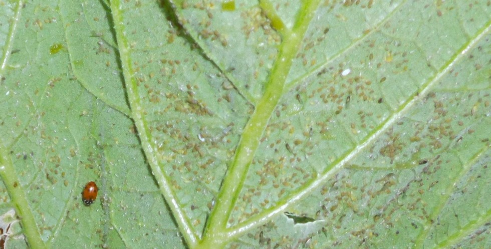 More bad luck, while I was gone for a week the aphids returned. This ladybug has her work cut out for her.