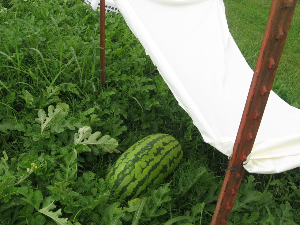 At an estimated 72 pounds, a second 197 Bright has joined the Watermelon Tent Club, as it is now too large for the two-bushel laundry basket. Yeah, I know. Maybe I'll do some weeding this weekend.