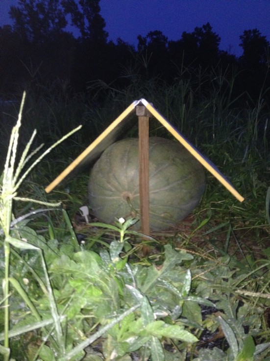 Sneaked into the patch last night and took this picture while melon was asleep. Did not wanr to bother him in the day time while he was eating
