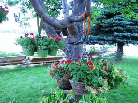 There 2 27 rings, the one on the left has pots set in the outer rings. The one on the right has hanging baskets from the edge of the six rings.