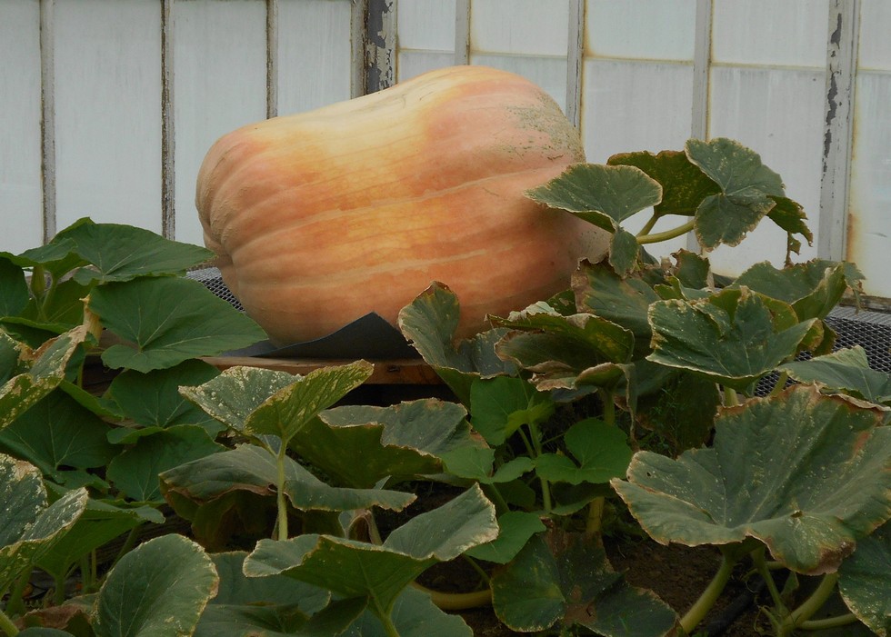 This pumpkin did accomplish a goal I set out to do� it would not fit out either of the greenhouse doors so I had to weigh it inside the greenhouse section and take it out in pieces!