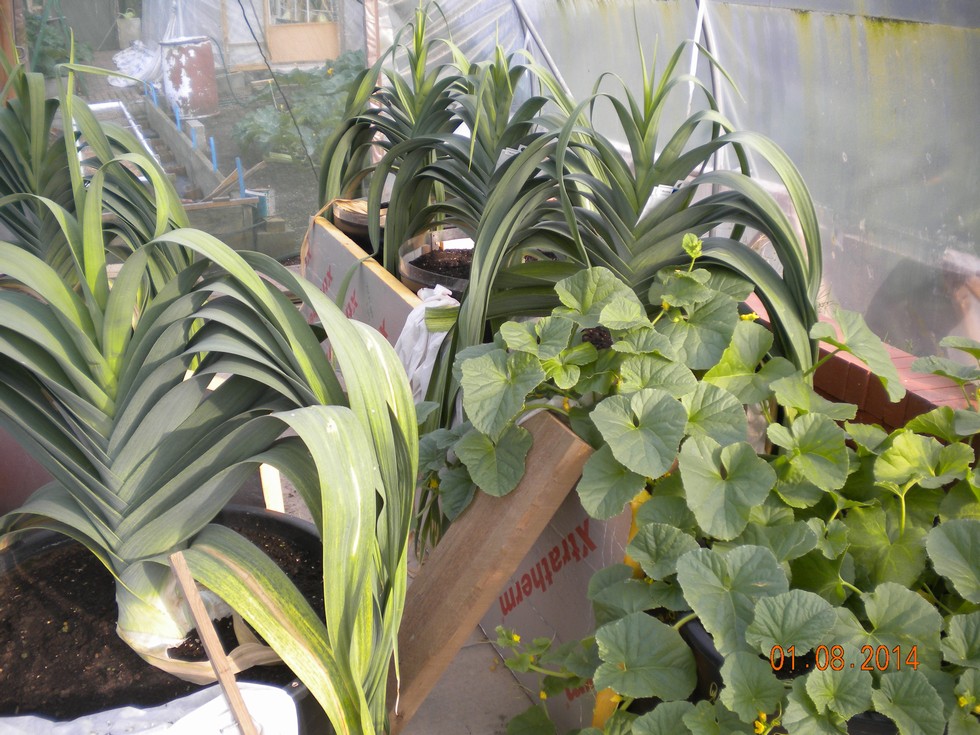 Heavy Leeks 'Yorkshire Giant' have been heavily shaded during the hot sunny July, this may have showed growth but all are clean and healthy. Spare Cantaloupe Melon plant in this tunnel is the healthiest I have and now has a fruit set, perhaps I have been going wrong growing them in full sun trained up wires?