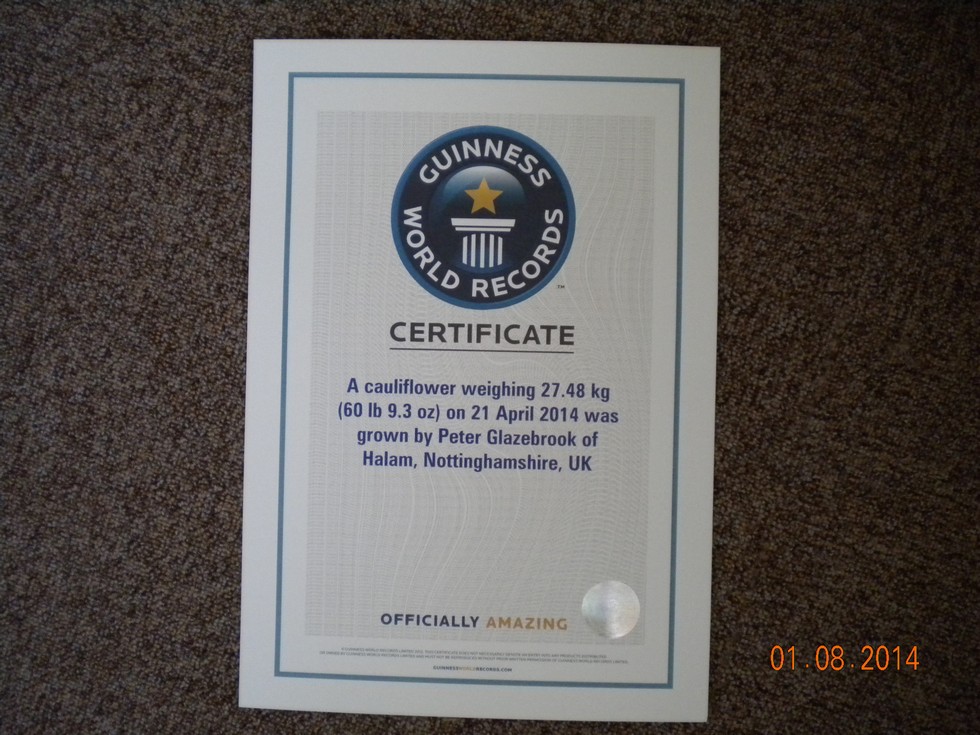 Cauliflower Guinness World Record certificate received, so it was all worth the effort and waiting.
