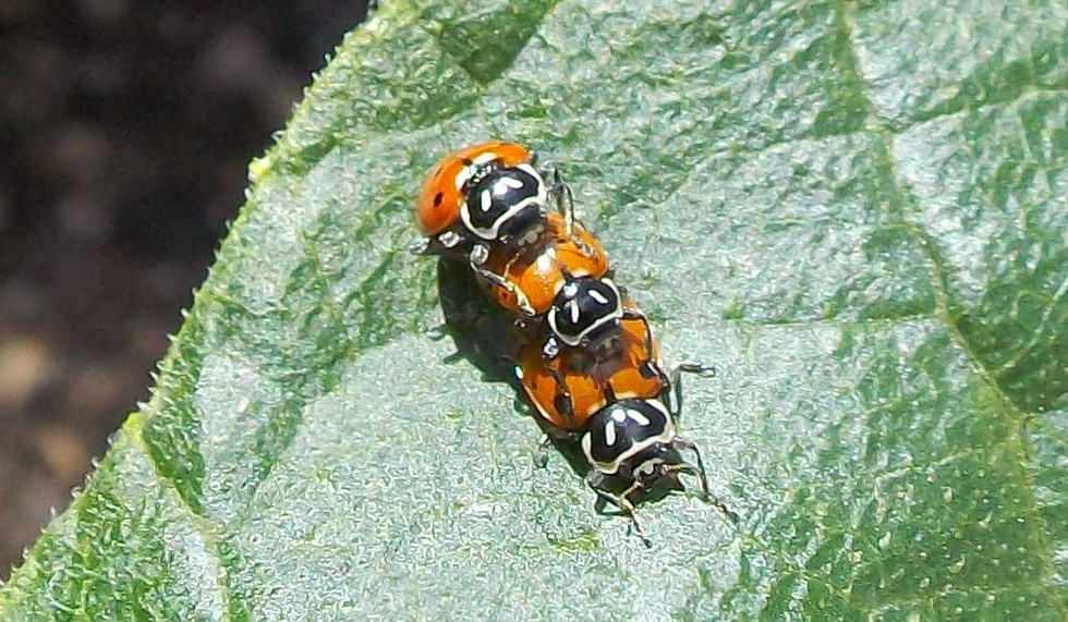 Last year I put out ladybugs early and often and had no aphids. This year I was a little late and now they're back. And once again it appears the ladies are having too much fun to bother with aphids.