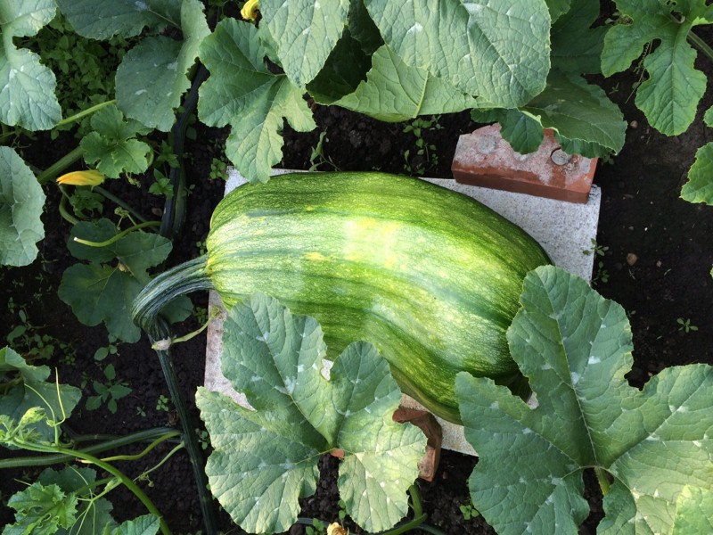 Here's a field pumpkin on my 137.4 long, it takes after the pollinating 81 wolf. Lots of different shapes from the 137.4 seeds. Already changing colour. That's not good.