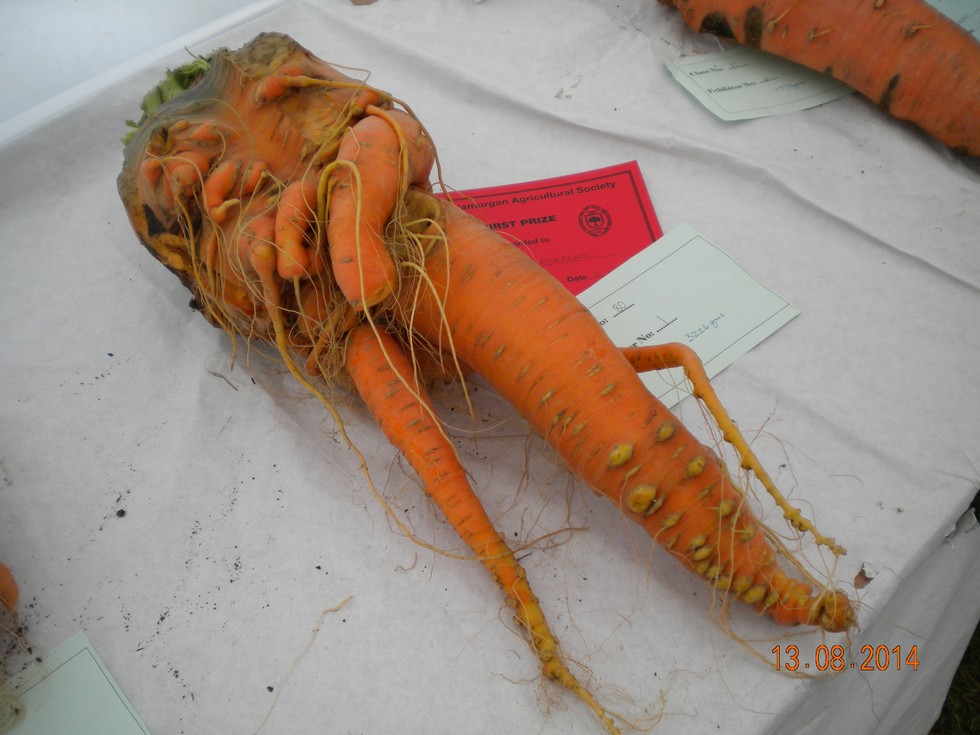 Pleased with my giant Carrot entry, hopefully the others still in the garden will put on more weight for the Sept. shows. One leg of the carrot root was broken of during the show, but we have to live with these mishaps.