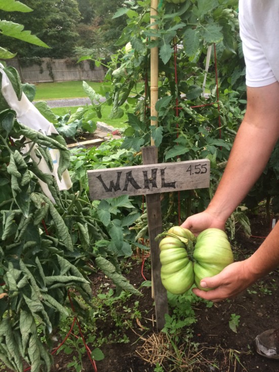 I saw a flash of color on the 4.55 Wahl plant ... as discussed on the message boards, I will let my maters ripen before weighing, but I didn't want this one to steal any more goodies from the "Real MacCoy" about a foot higher on the plant ... feels heavy ...