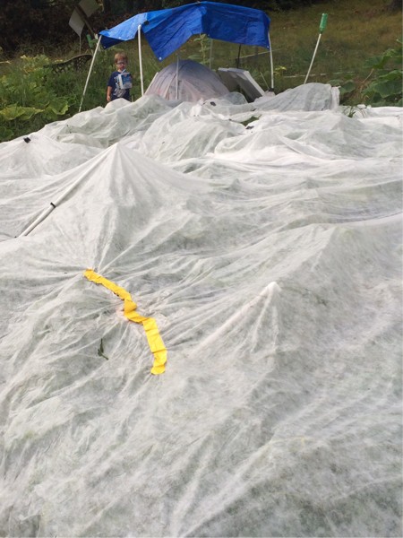 Covered plant with reemay. Before a strong rain storm it made it through now it's only 52� warmest part of the day here my little pumpkin was doing a half an inch circumference a day before this cold front