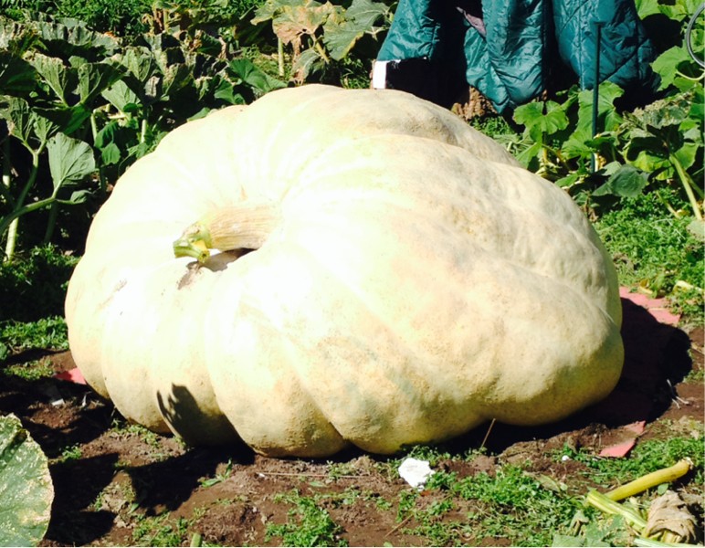 The 1338 DMG est Nieuwenhoff 2014. I found a 6 inch white spot on it today that was indeed a rotten spot. It likely succumbed to the stem split I have been battling since 300 pounds. Hopefully it has seeds as it's a pretty good cross regardless of its outcome. (2032 Mathison x 1381 Checkon)