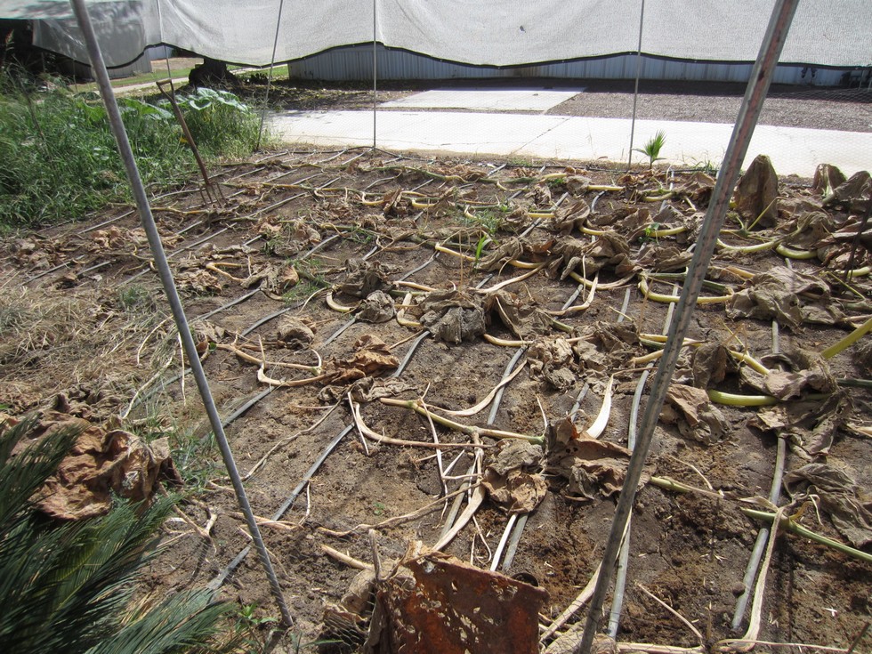 the patch as of today. She went from the healthiest plant I had ever had to one of the unhealthiest for early die off. I attribute it to the mosaic virus mainly, along with over grown pm problems, and then temps up to 108 with humidity. A rough end to the season with the fruit only growing 70 days. My average is atleast 80 days, with 90 plus days realistic. Vince got over 100 days one year. So I missed a lot of year end weight with the fruit stopping early.