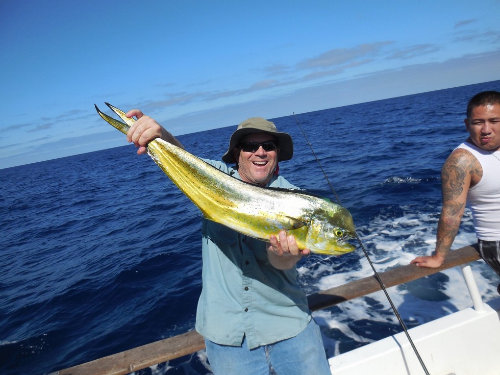 KC Kevin here on BP joined us. Here he is with one of the many Dorado we caught on this warm summer day!