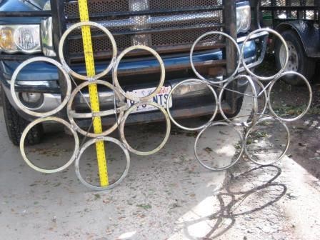 My welder has made me some new bigger rings. The right ring is my 40" Monster ring. The left is a much heavier ring that is approximately 43" diameter. For comparision the Monster ring weights app 54lbs and Heavier ring weights 75 lbs. With the much larger pumpkins that are being grow larger and strong lifting rings are needed.