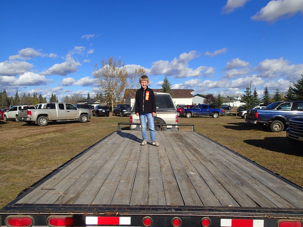 Waiting to load the kid's pumpkin. The kids' squash and my pumpkin and squash were given good homes. Just waiting our turn in line. The gas mileage was better for the 700km trip home.