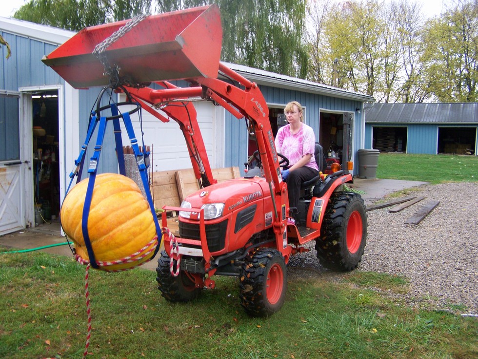 I won on of Lee's small lifting rings in Las Vegas. It is perfect for pumpkins up to 600 lbs or so. Our club ring is too big for those. We moved 6 yesterday, 8 today and it will get to lift probably 10 or 12 tomorrow before we put the big boy on.