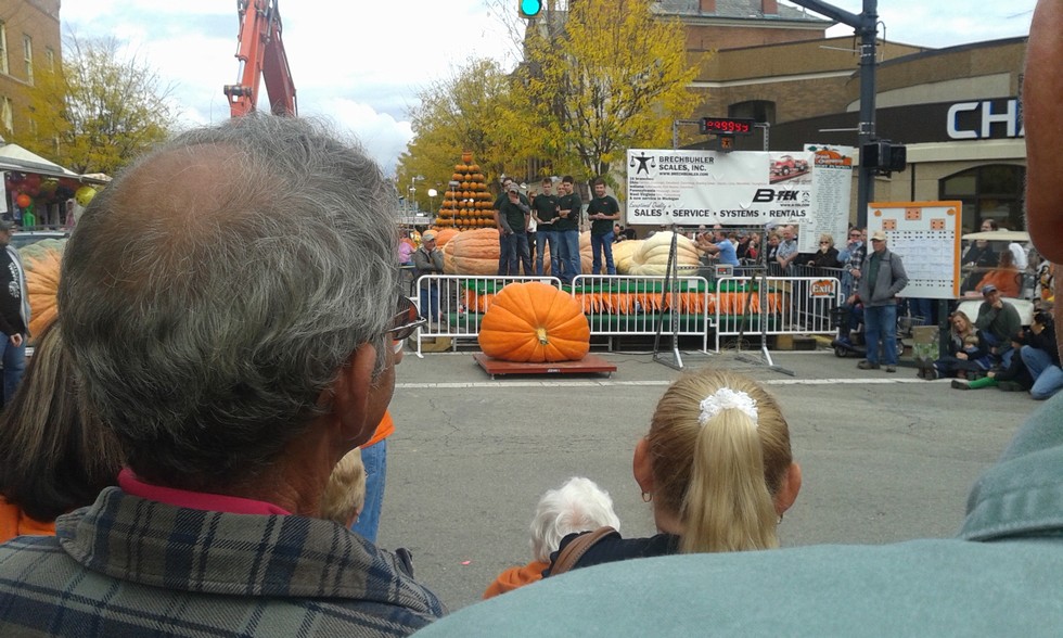 jonathon weston had a beautiful pumpkin also, went over a thousand pounds for him also.here it is on the scale. nice job jonathon. very nice young man also.