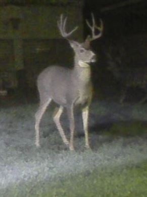 A better picture of one of the bucks visiting my garden at night. On the plus side, I found one last Carolina Reaper pepper after the bucks ate all the leaves off the plant.