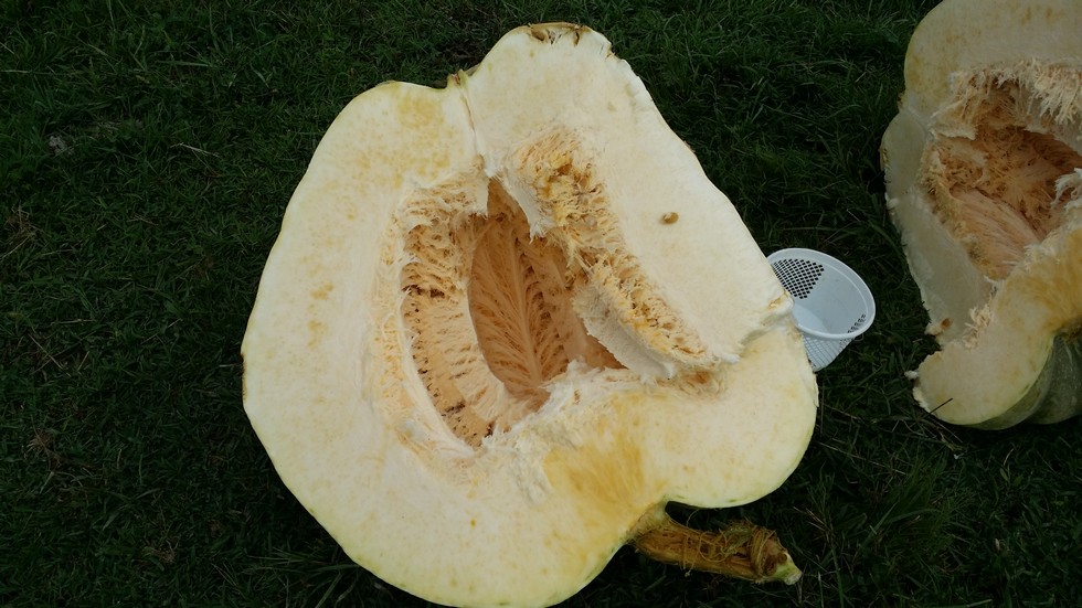 She didn't hold till the fair. Had a couple bad spot develop on the side in the weeds so instead of taking a weeping squash to the fair I just cut it. Wish I had taken her to get it weighed to see just how much heavy she went. Doesn't matter now. 490 Cantrell 14 est. No luck on getting a greenhouse for the winter project so we'll have to wait till spring.