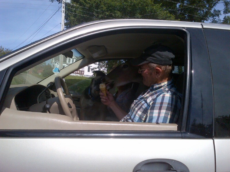 I was minding my business when this fella drove up to me and asked " Want to see something?" Then his deer started to eat his ice cream cone.