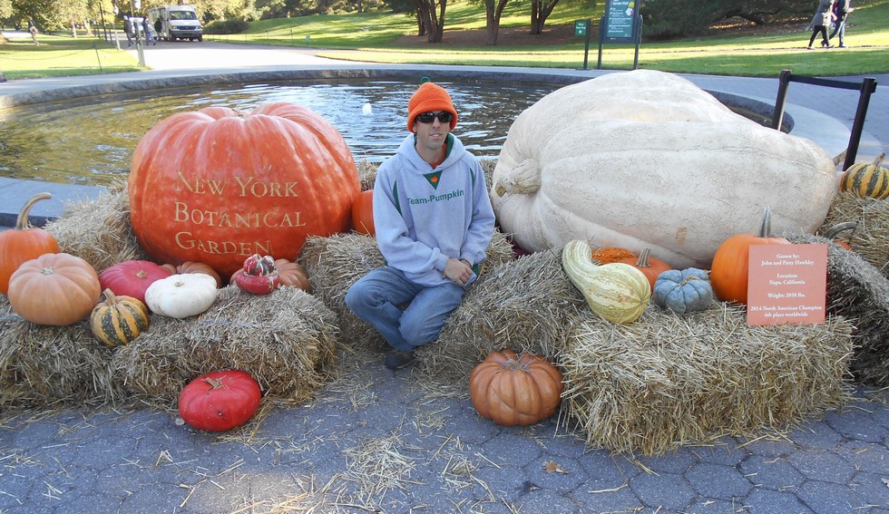 Getting to see the North American Champion pumpkin up-close and personal is an honor. This 2,058 pound pumpkin had some impressive length to it and just as the picture shows, it was very white in color. Since it was displayed next to a very orange pumpkin at the main entrance to the gardens I think this made its white color even more apparent. It was hard to get a good picture, but this pumpkin did have an impressive length to it that made it look very impressive. This is also the same spot that the 1810 Stevens was when it was on display so this exact spot holds many memories related to big pumpkins for me.