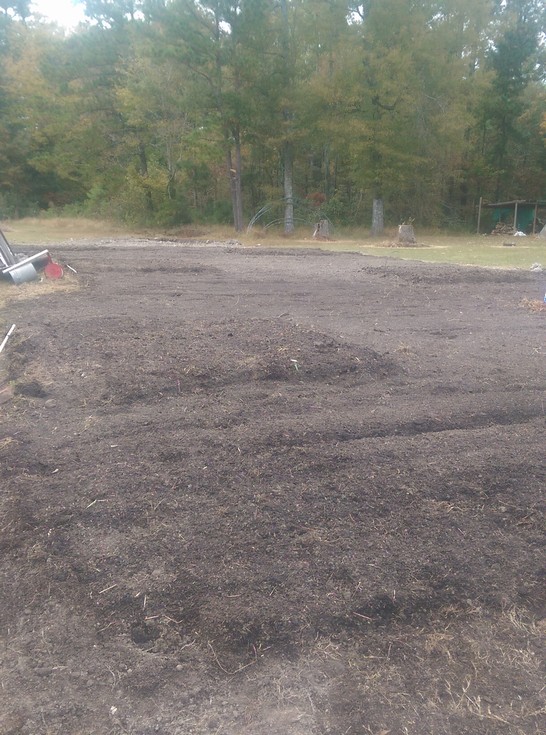 It is done. While it doesn't look like much: that's a 6" raised patch measuring 120' long and 40' wide for the 6 plants next year. As I was already digging and shoveling, I went ahead and created 100 square foot raised beds for all 6 plants too. Much digging, shoveling, leveling, tilling, and compost went into it....I don't own a tractor. The dirt came out of 'pond' I had dug for drainage at the far end of patch in picture. This should give me a great draining patch next year!!! I HOPE. Well, onto the winter project pumpkins!!!